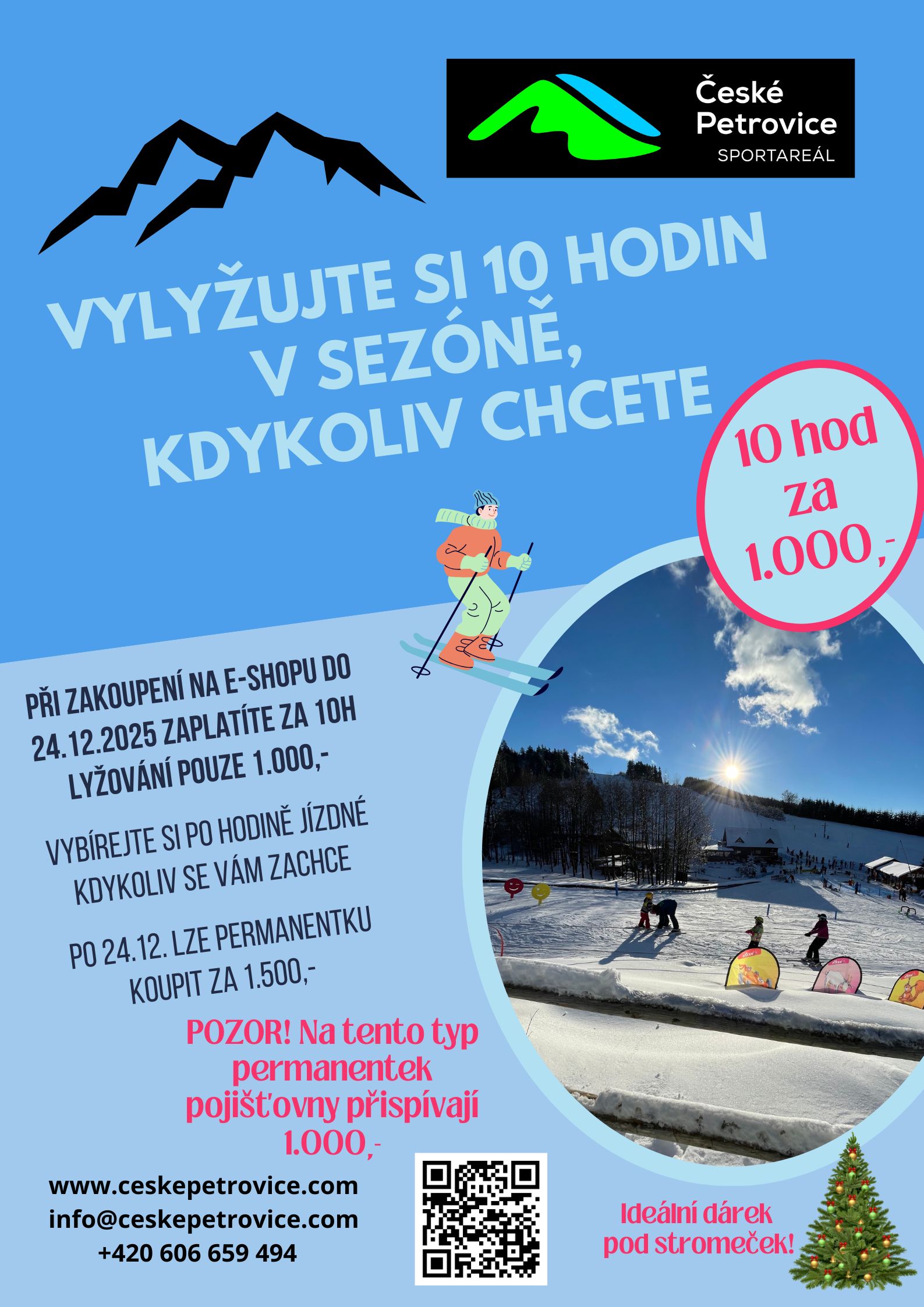 10 hodin lyžování - můžete čerpat během celé sezóny i po jedné hodině