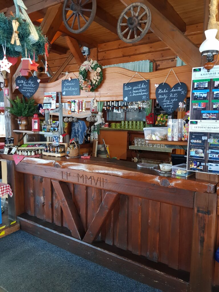 Stylově zařízený SKI Bar po vzoru našich babiček  s příjemným posezením u kamen. Interiér je  vytápěn kachlovou pecí a k dispozici je 50 míst k sezení. V naší nabídce naleznete výhradně domácí polévky, hotovky, minutky i dětská jídla. Specialitou pro letošní zimní sezónu je Domácí burger a Orlické brambory. Samozřejmostí jsou horké nápoje a oblíbeným zimním drinkem je Turbo hruška. Pro děti nabízíme spoustu odměn po lyžování v podobě domácích palačinek apod.